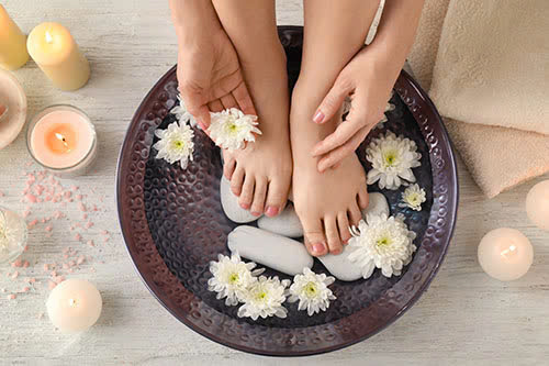 Delight your feet with our sole saving treatment Includes nail trimming and shaping, callus treatment, cuticle grooming and buffing followed by a smoothing massage and hot towels.